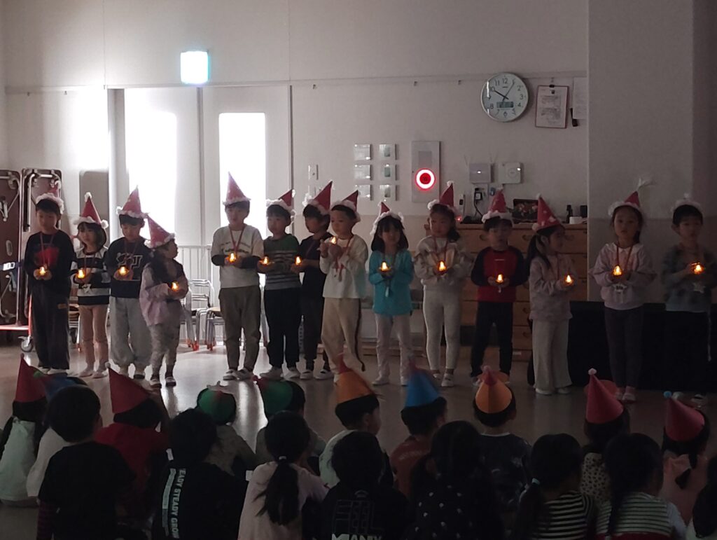 ろうそくの灯りの中、♪きよしこのよる♪を歌い、温かな雰囲気で始まりました。