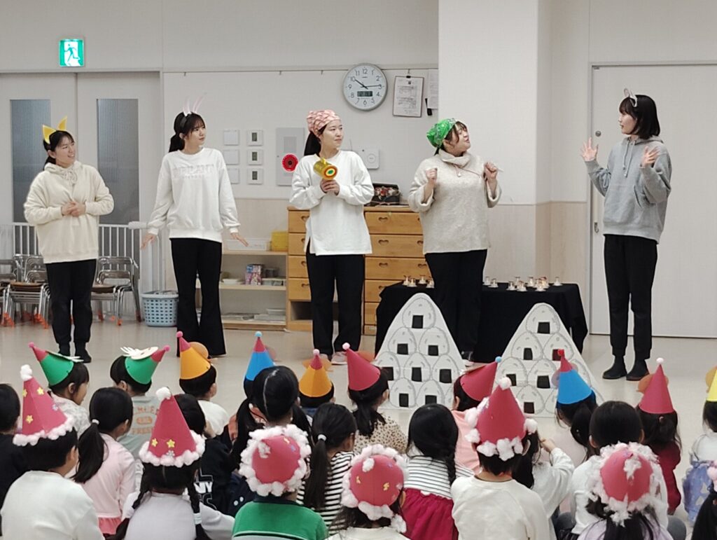 次は、職員による『おむすびころりん』の劇。発表会でほしぐみさんがやった劇だったので、子どもたちも嬉しそうに見ていました。