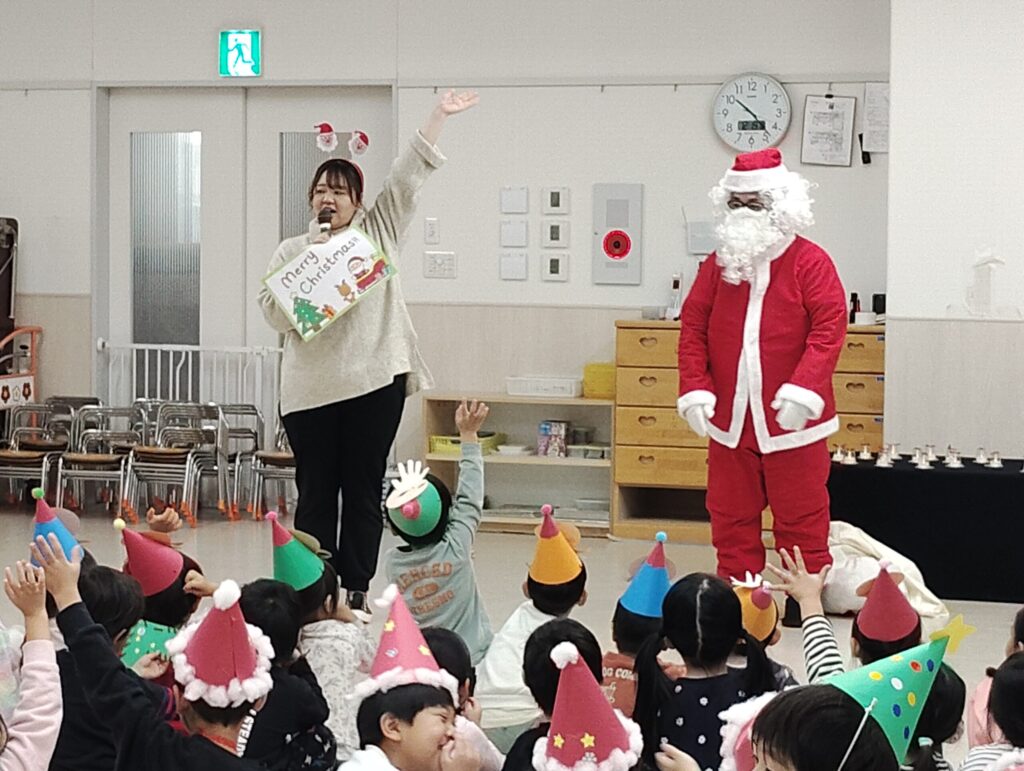 劇の次は待ちに待ったサンタクロースの登場!!子どもたちはサンタさんの姿に目を輝かせていました。サンタさんへの質問は・・「大好き!」「プレゼントを配ってくれてありがとう」とメッセージを伝える子どもたちでした。