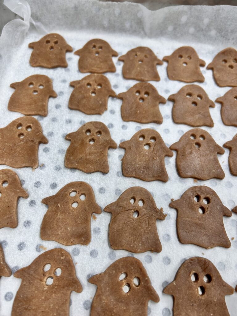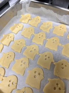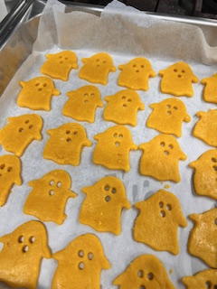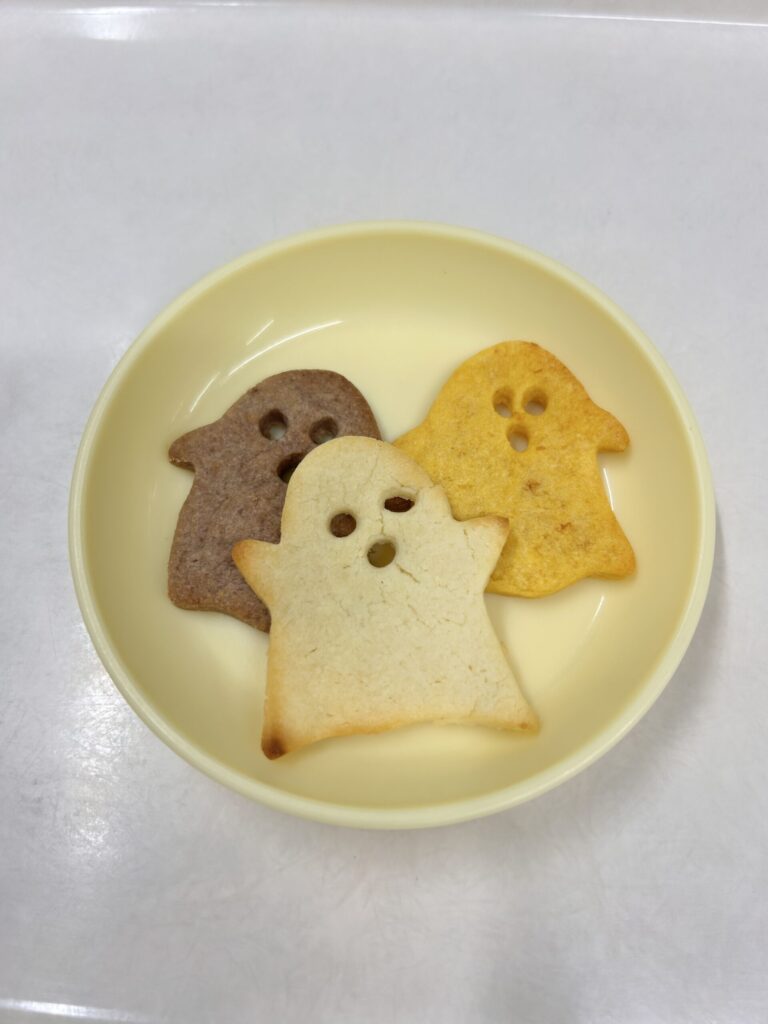 生地にかぼちゃ・ココア・スキムミルクを練り込み3種類の可愛いおばけができました!